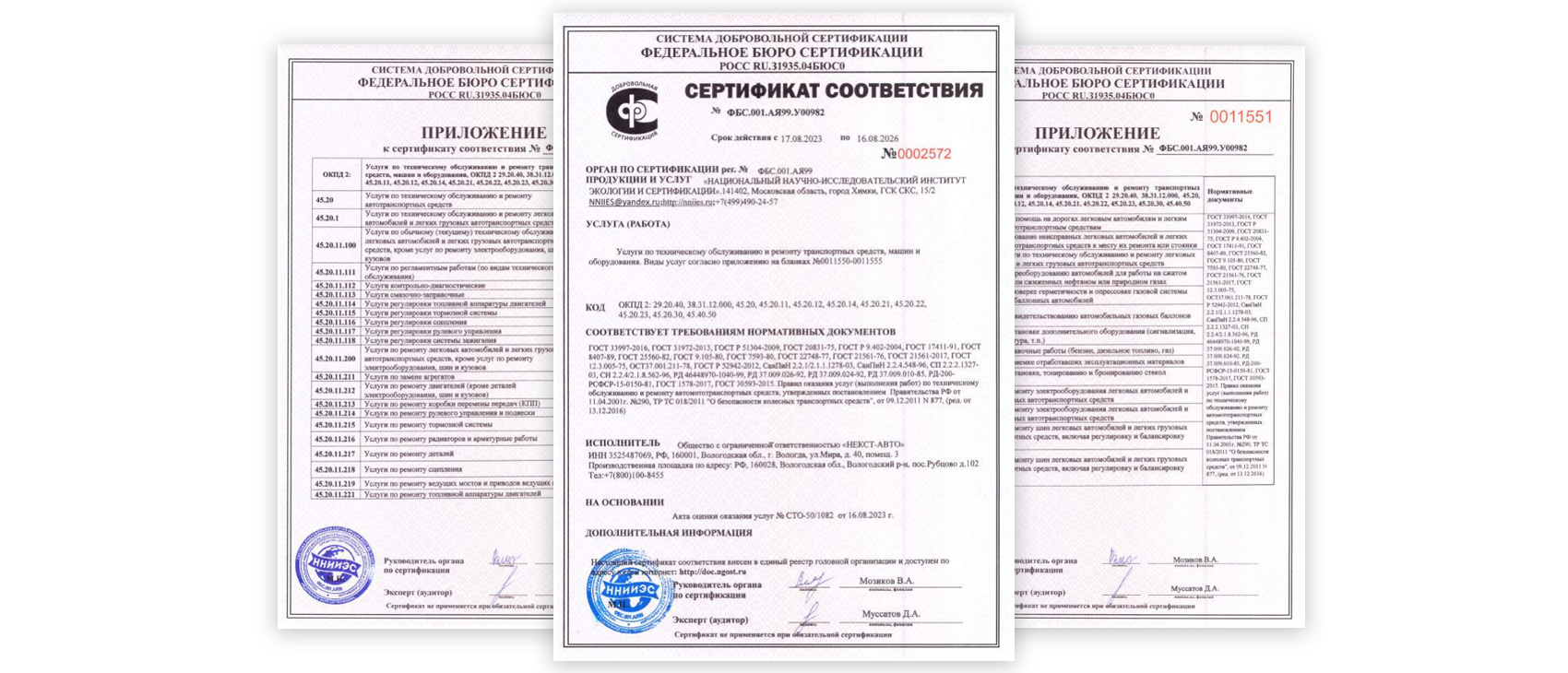 сертификатов СТО
